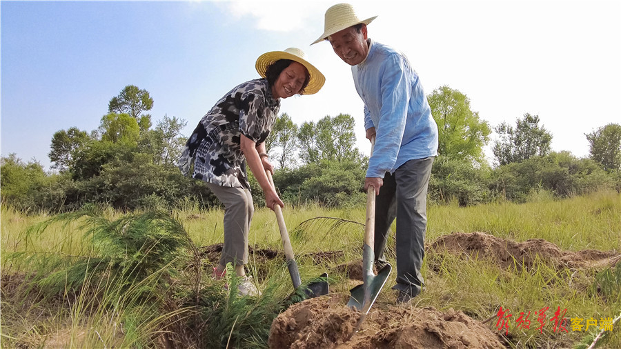 今年8月,張連印與夫人王秀蘭在北梁山坡上栽下了500棵沙地柏,紀(jì)念他們結(jié)婚50周年。丁美寧 攝