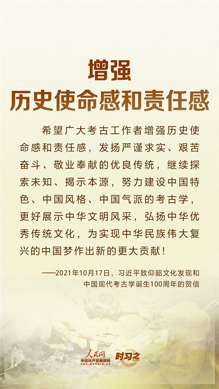 10月17日,在仰韶文化發(fā)現(xiàn)和中國(guó)現(xiàn)代考古學(xué)誕生100周年之際,中共中央總書記、國(guó)家主席、中央軍委主席習(xí)近平發(fā)來賀信,代表黨中央向全國(guó)考古工作者致以熱烈的祝賀和誠(chéng)摯的問候。