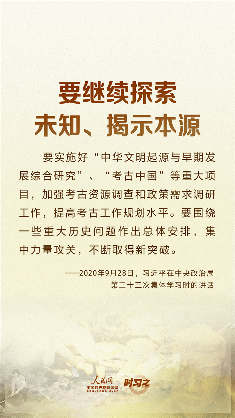 做好考古和歷史研究工作,努力建設(shè)中國(guó)特色、中國(guó)風(fēng)格、中國(guó)氣派的考古學(xué),習(xí)近平始終高度重視。