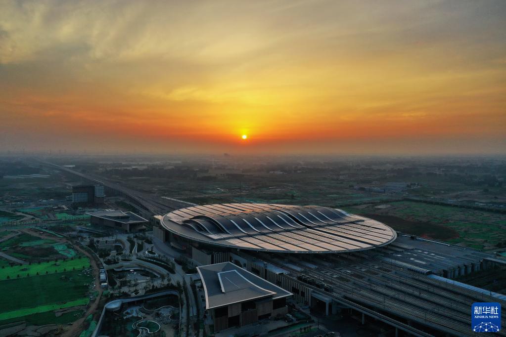這是7月1日拍攝的京雄城際鐵路雄安站(無(wú)人機(jī)照片)。新華社記者 牟宇 攝