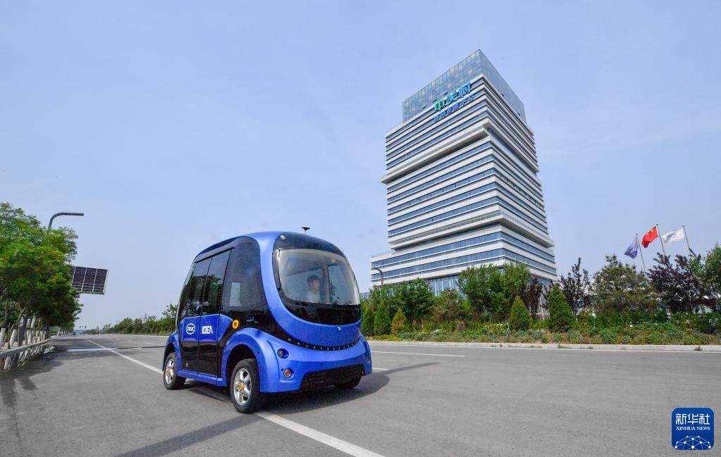 一輛無(wú)人駕駛汽車(chē)在京津中關(guān)村科技城內(nèi)部道路進(jìn)行道路測(cè)試(5月19日攝)。新華社記者 孫凡越 攝