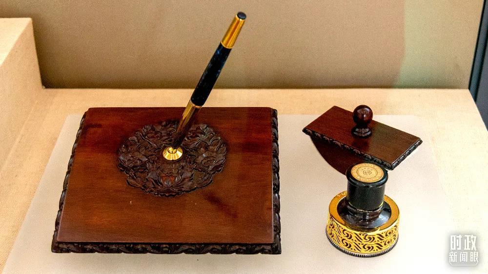 △這是在多哈會議上簽署中國加入世貿(mào)組織法律文件時使用的文具。(圖/視覺中國)