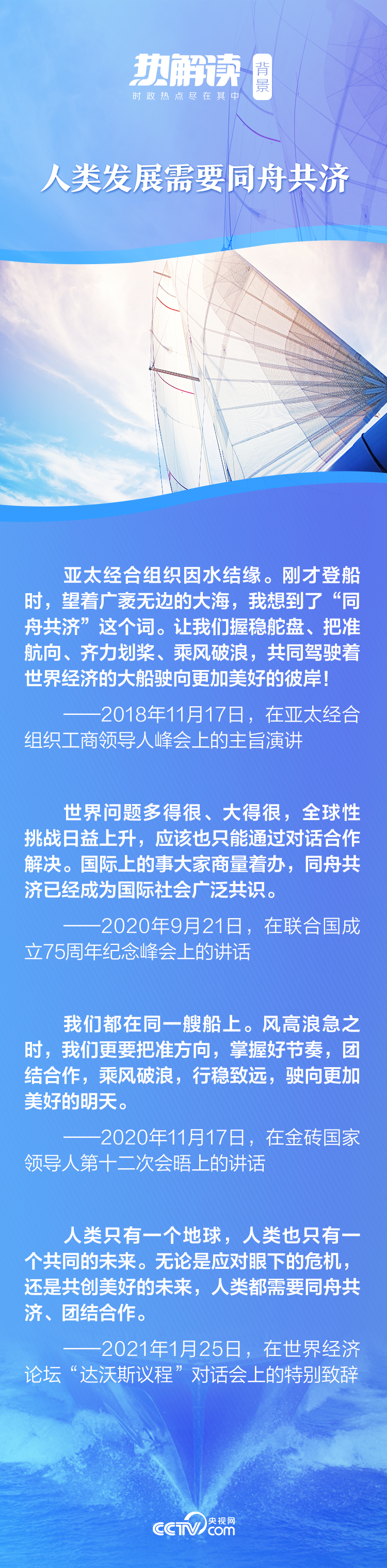在演講中,習(xí)近平主席再提“大船論”,他用“各國不是乘坐在190多條小船上,而是乘坐在一條命運與共的大船上”這一形象比喻揭示了人類命運休戚與共的現(xiàn)實。