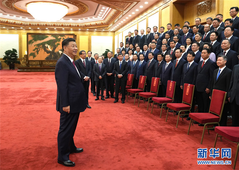 2019年6月25日,黨和國家領導人習近平、李克強、王滬寧等在北京人民大會堂會見第九屆全國“人民滿意的公務員”和“人民滿意的公務員集體”受表彰代表。 新華社記者 李學仁/攝