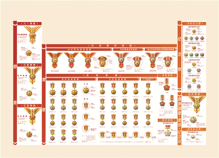 近日,中共中央、國(guó)務(wù)院、中央軍委印發(fā)了《軍隊(duì)功勛榮譽(yù)表彰條例》,同步啟用新時(shí)代軍隊(duì)勛章、獎(jiǎng)?wù)隆⒓o(jì)念章。新的勛章、獎(jiǎng)?wù)隆⒓o(jì)念章聚焦勝戰(zhàn)、聚力強(qiáng)軍,設(shè)計(jì)精美、承載厚重,對(duì)于激勵(lì)全軍官兵奮進(jìn)新征程、建功新時(shí)代,具有重要意義。規(guī)格上,從內(nèi)容元素、尺寸外觀、制作材質(zhì)等方面進(jìn)行區(qū)分,從紀(jì)念章到勛章尺寸依次增大。意蘊(yùn)上,勛章彰顯至高榮譽(yù),榮譽(yù)稱(chēng)號(hào)獎(jiǎng)?wù)峦癸@標(biāo)桿楷模,獎(jiǎng)勵(lì)表彰獎(jiǎng)?wù)麦w現(xiàn)功績(jī)褒獎(jiǎng),紀(jì)念章反映榮譽(yù)經(jīng)歷。