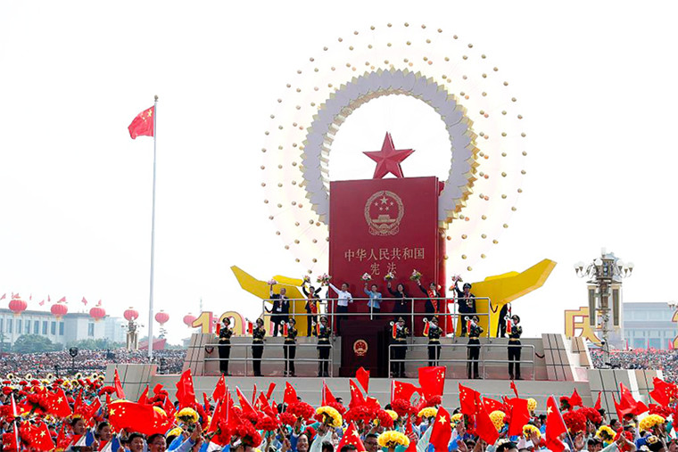 2018年3月17日,十三屆全國人大一次會議在北京人民大會堂舉行第五次全體會議。這是習近平進行憲法宣誓。