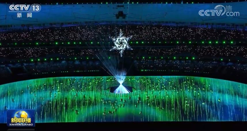 盛會即將結(jié)束,又到了分別的時刻。中國古人常折柳送別,寄托思念之情。365名各行各業(yè)、不同年齡的普通人手捧柳枝,匯聚在場地中央,代表一年365天的思念。白色的光束從場地中央亮起,形成一座光的豐碑,承托起主火炬“大雪花”。大屏幕播放短片《2022,有我們!》,記錄下冬奧會一個個溫暖人心的場景。