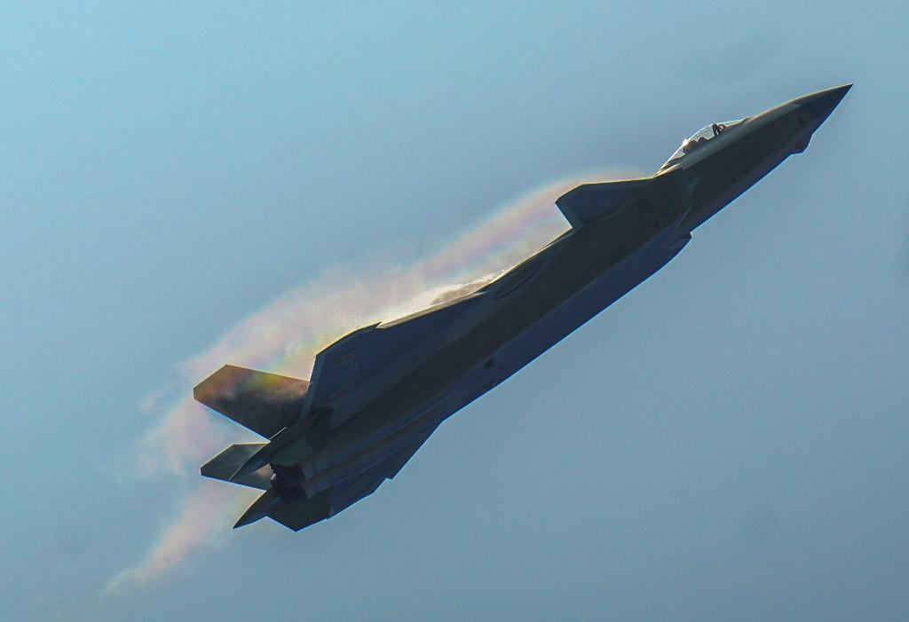 2021年9月28日,第十三屆中國(guó)國(guó)際航空航天博覽會(huì)在廣東珠海開(kāi)幕,這是中國(guó)空軍殲-20戰(zhàn)機(jī)在開(kāi)幕式上進(jìn)行飛行表演。新華社記者 劉大偉 攝