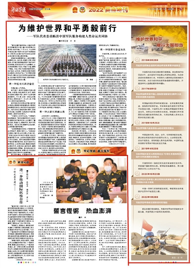 領(lǐng)袖的話語激蕩官兵心,統(tǒng)帥的囑托鼓舞將士志。連日來,在維和、護航、疫苗援助、對外救災(zāi)物資輸送等多個海外執(zhí)行任務(wù)領(lǐng)域,我軍官兵牢記習(xí)主席囑托,以優(yōu)異表現(xiàn)展現(xiàn)了擔(dān)當(dāng)、傳遞了友誼、贏得了尊重。對此,軍隊代表委員感同身受。他們表示,近年來,中國軍隊積極向國際社會提供公共安全產(chǎn)品,廣泛開展抗疫國際合作,攜手各方應(yīng)對共同安全威脅和挑戰(zhàn),成為維護世界和平穩(wěn)定、服務(wù)構(gòu)建人類命運共同體的堅定力量。