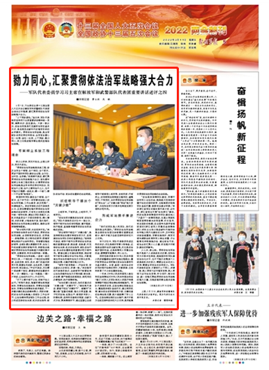 學(xué)習(xí)討論中,軍隊代表委員形成這樣的共識:無論是做好軍事斗爭準(zhǔn)備,還是推動國防動員創(chuàng)新發(fā)展;無論是依法維護國防利益,還是保障軍人軍屬合法權(quán)益,都需要軍地攜手,同心合力。