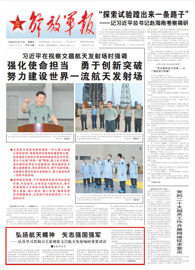 ——認(rèn)真學(xué)習(xí)貫徹習(xí)主席視察文昌航天發(fā)射場時重要講話