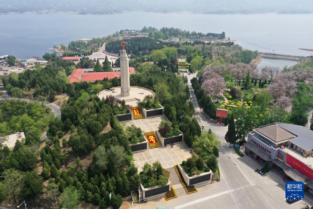 河北省平山縣西柏坡紀念塔(2021年4月26日攝,無人機照片)。新華社記者 朱旭東 攝