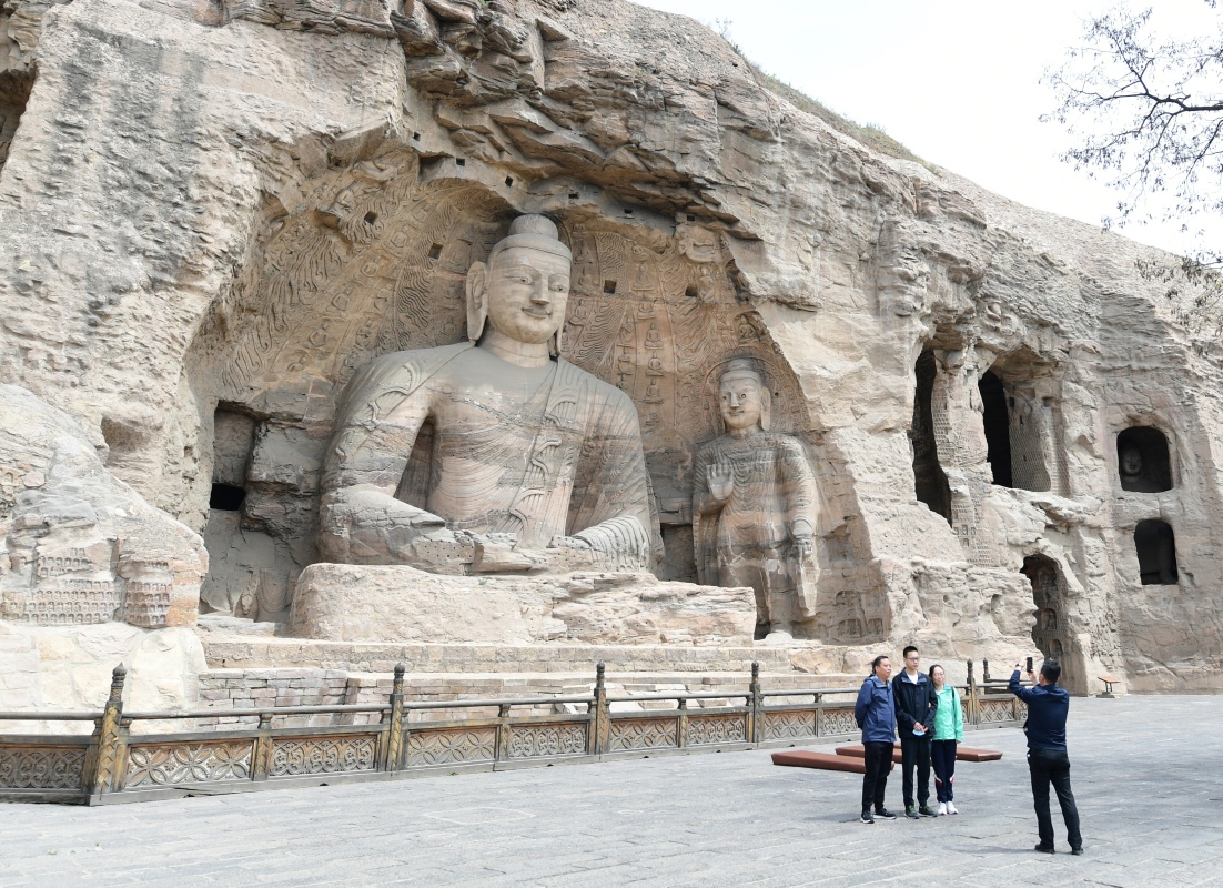 5月11日,游客在云岡石窟景區(qū)參觀。新華社記者 楊晨光 攝