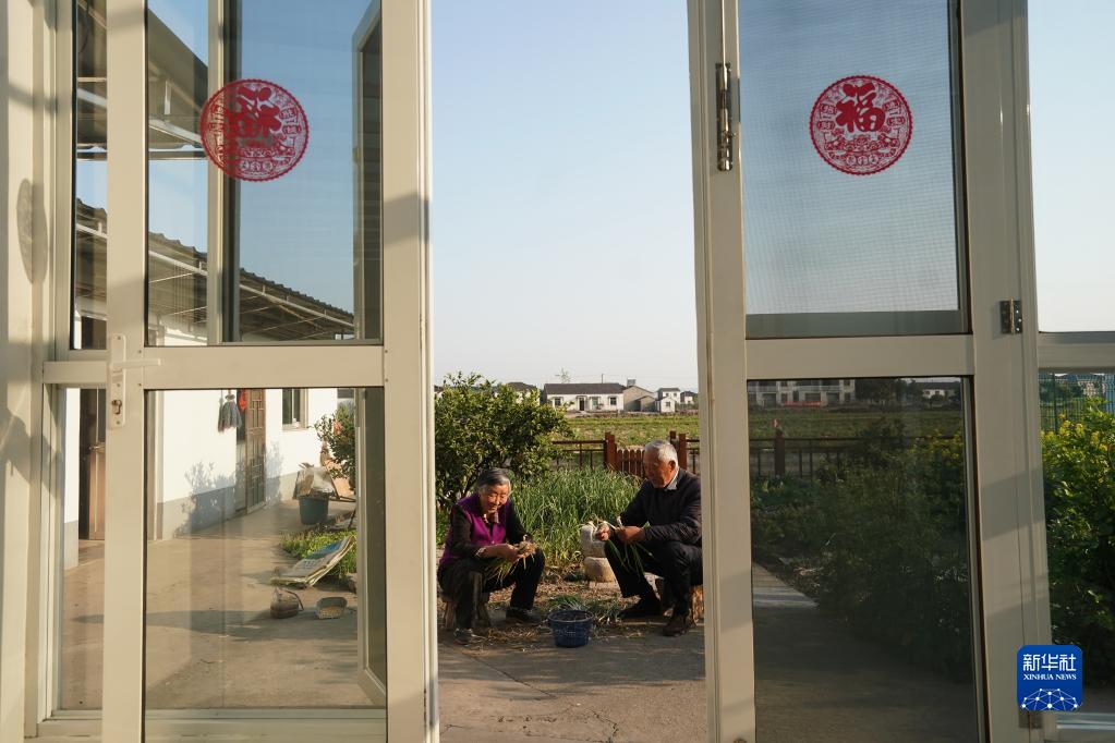 鎮(zhèn)江市世業(yè)鎮(zhèn)永茂圩自然村村民洪家勇(右)和老伴楊松華在家中忙家務(wù)(2020年4月13日攝)。新華社記者 季春鵬 攝