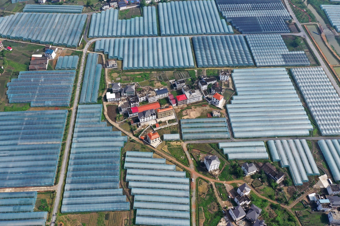 江西省贛州市于都縣梓山鎮(zhèn)潭頭村的果蔬種植基地(2021年4月29日攝,無人機(jī)照片)。新華社記者 萬象 攝