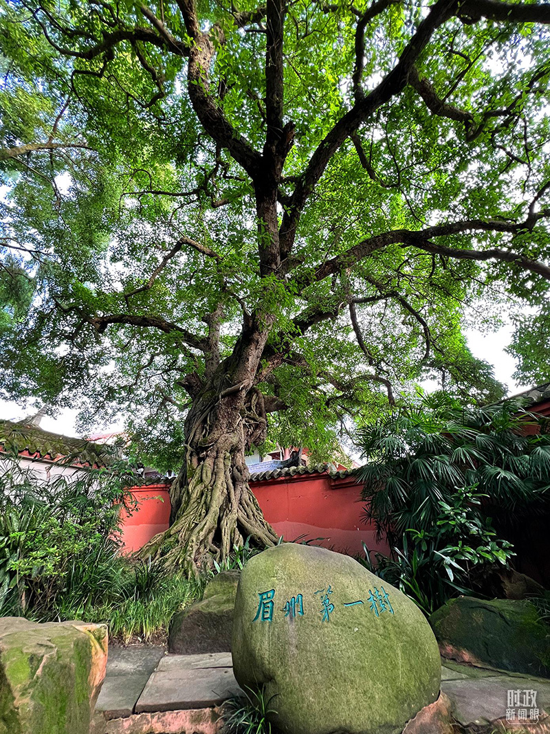 △三蘇祠內(nèi)被稱為“眉州第一樹”的千年黃葛樹。(總臺央視記者楊新禹拍攝)
