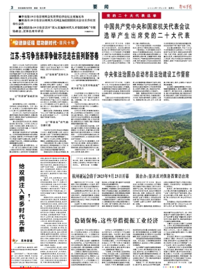 一個童話故事里,有這樣一段魚和水對話——魚對水說:“你看不到我的眼淚,因為我在水里”;水對魚說:“我能感覺到你的眼淚,因為你在我心里”。我們相信,軍地各級只要以日新精神、精進態(tài)度,給雙擁注入更多時代元素,雙擁活動的內(nèi)容就會越來越豐富,雙擁之路就會越走越寬廣。