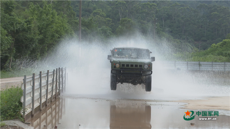 比武集訓(xùn)中,指揮車沖出涉水路。