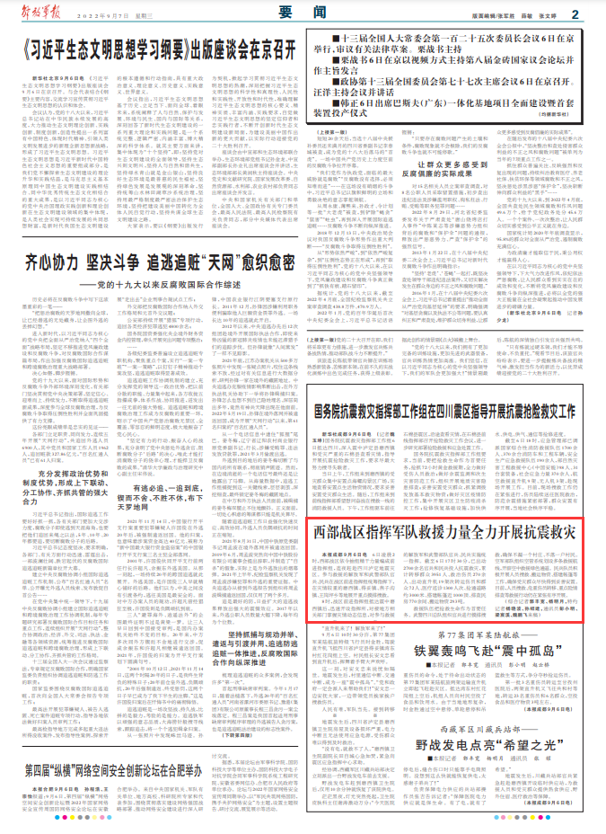 解放軍報成都9月6日電 6日凌晨2時,西部戰(zhàn)區(qū)依令抽組精干力量編成前進指揮組,連夜趕赴四川瀘定地震災區(qū)。參與救援的解放軍和武警部隊官兵、民兵在戰(zhàn)區(qū)前進指揮組統(tǒng)籌指揮下,在災情較重的磨西鎮(zhèn)、得妥鎮(zhèn)、燕子溝鎮(zhèn)、王崗坪鄉(xiāng)等地展開重點摸排搜救。