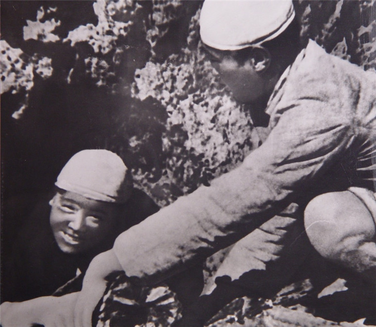 和戰(zhàn)友一起燒炭的張思德(左)。資料照片