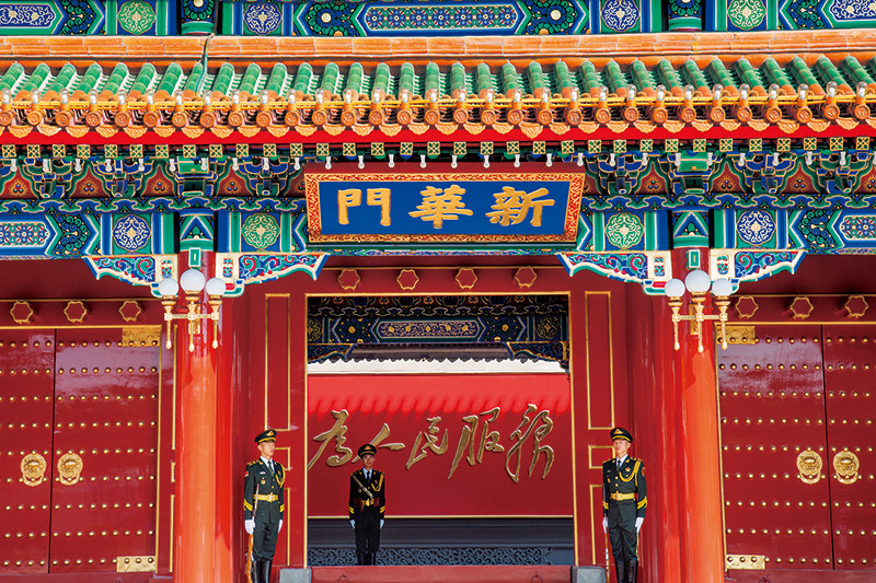 中南海新華門(mén)影壁上的“為人民服務(wù)”金色大字。資料圖片