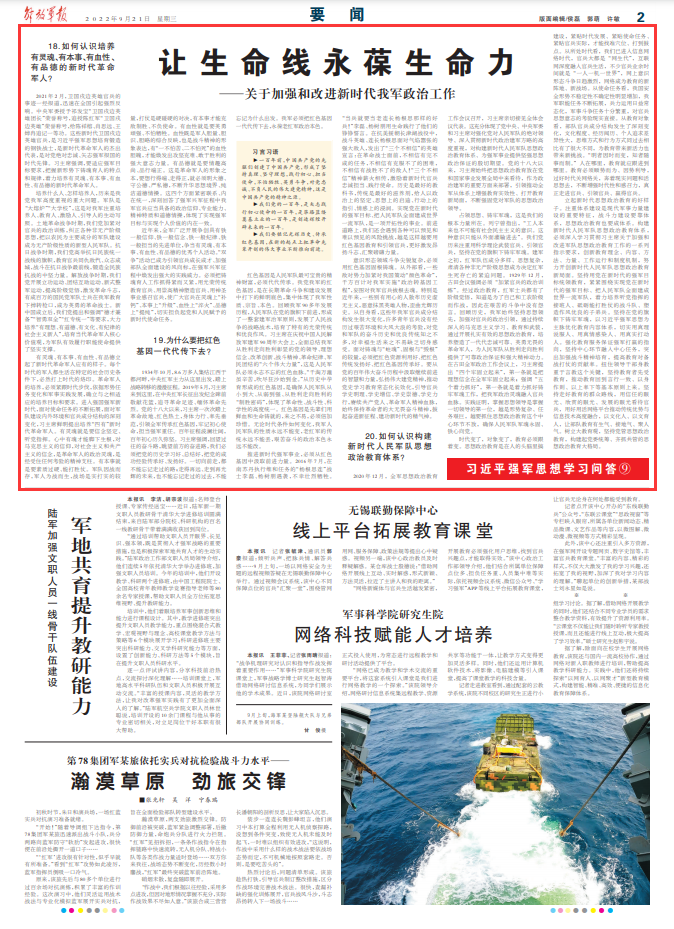 讓生命線永葆生命力——關(guān)于加強(qiáng)和改進(jìn)新時代我軍政治工作