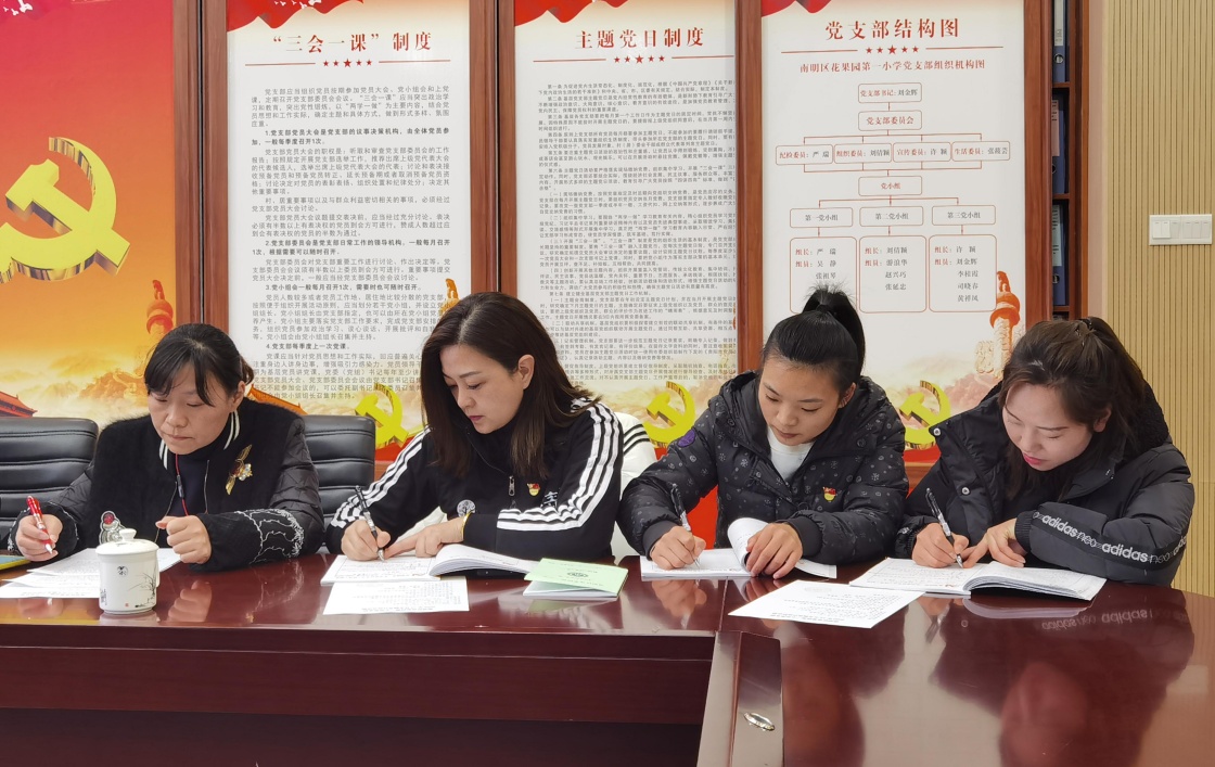 在貴州省貴陽市南明區(qū)花果園第一小學(xué)舉行的主題黨日活動(dòng)上,教師們?cè)谧龉P記(2020年12月2日攝)。新華社發(fā)(許穎 攝)