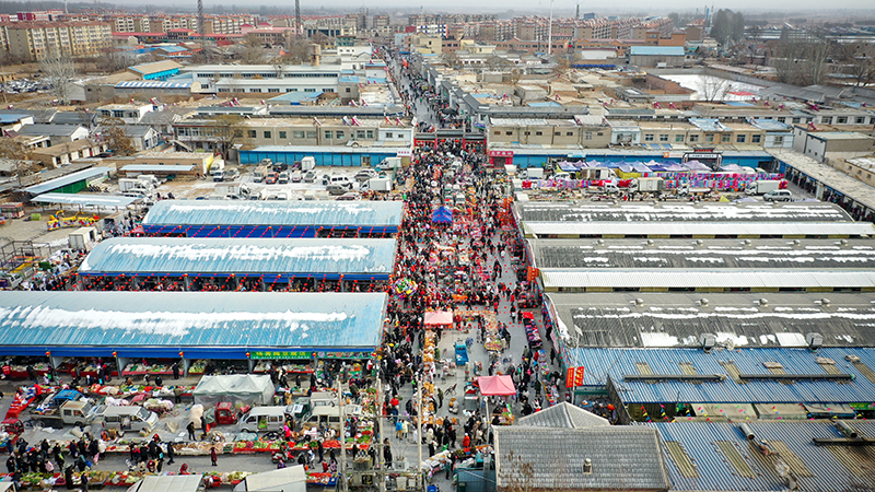 △2023年1月14日,寧夏銀川市賀蘭縣百年鄉(xiāng)村大集金貴大集上貨品琳瑯滿目,洋溢著濃濃年味,吸引人們前來選購年貨。