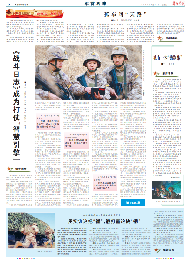 “號(hào)手能如此臨機(jī)處置,靠的正是那本《戰(zhàn)斗日志》?!笨追鄙f(shuō),它早已從一本個(gè)人筆記升級(jí)成編組共享的“作戰(zhàn)寶典”,成為驅(qū)動(dòng)戰(zhàn)斗力螺旋式上升的“智慧引擎”。