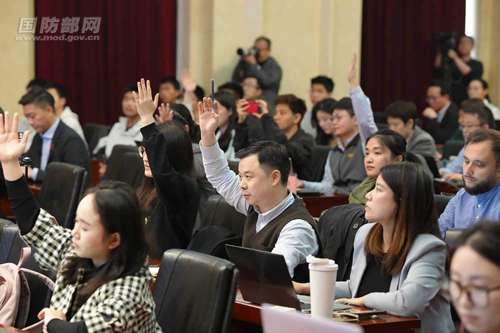 3月26日下午,國防部舉行例行記者會,現(xiàn)場記者提問。孫悅 攝