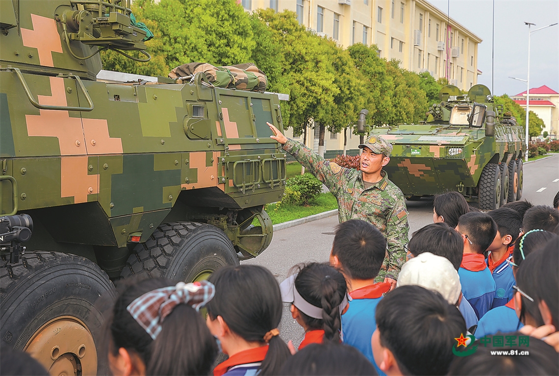 4月上旬,第72集團軍某旅邀請駐地學(xué)生走進軍營,開展全民國家安全教育日活動,增強學(xué)生的國家安全意識。圖為該旅一名干部向?qū)W生介紹武器裝備。張 騰攝