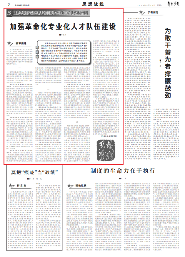 加強(qiáng)革命化專業(yè)化人才隊(duì)伍建設(shè)