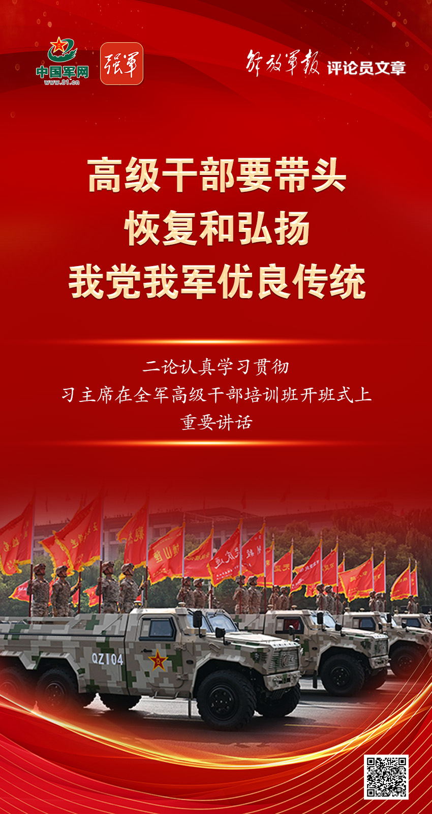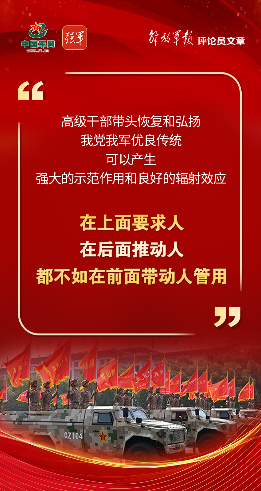 金句海報(bào)|解放軍報(bào)評(píng)論員文章②:高級(jí)干部要帶頭恢復(fù)和弘揚(yáng)我黨我軍優(yōu)良傳統(tǒng)