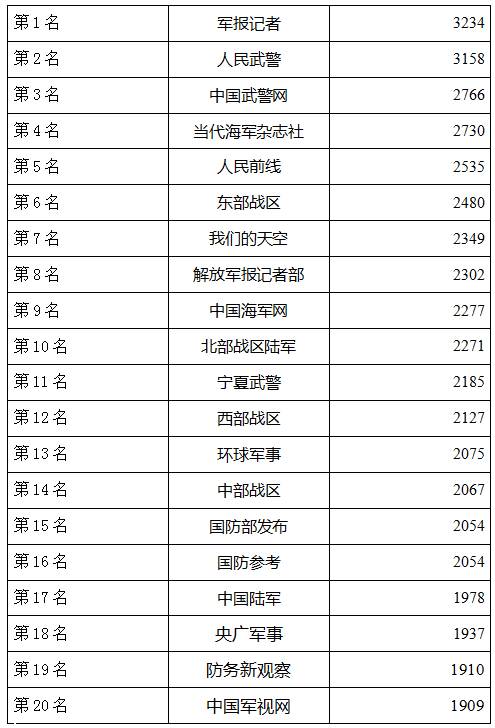 軍隊和中央媒體微信公眾號排行榜