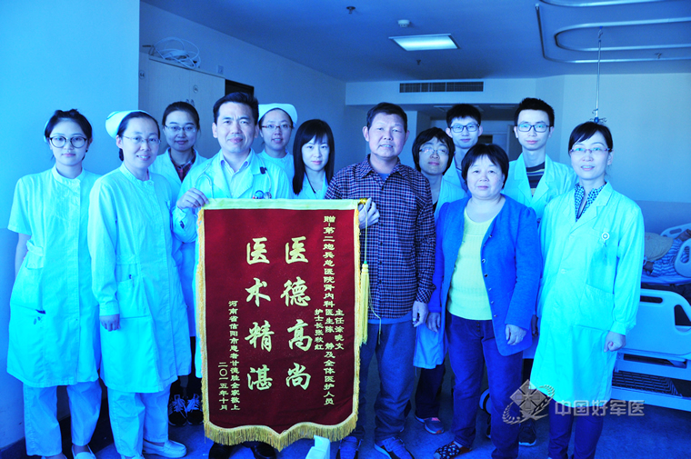 “涂主任,是你們給了我第二次生命,謝謝,謝謝!”10月13日,來自河南的46歲的男性患者甘德勝經(jīng)過第二炮兵總醫(yī)院腎臟內(nèi)科的精心治療后康復(fù)出院,為回報救命之恩,患者將一面“醫(yī)術(shù)精湛、醫(yī)德高尚”的錦旗送到腎臟內(nèi)科主任涂曉文的手中。