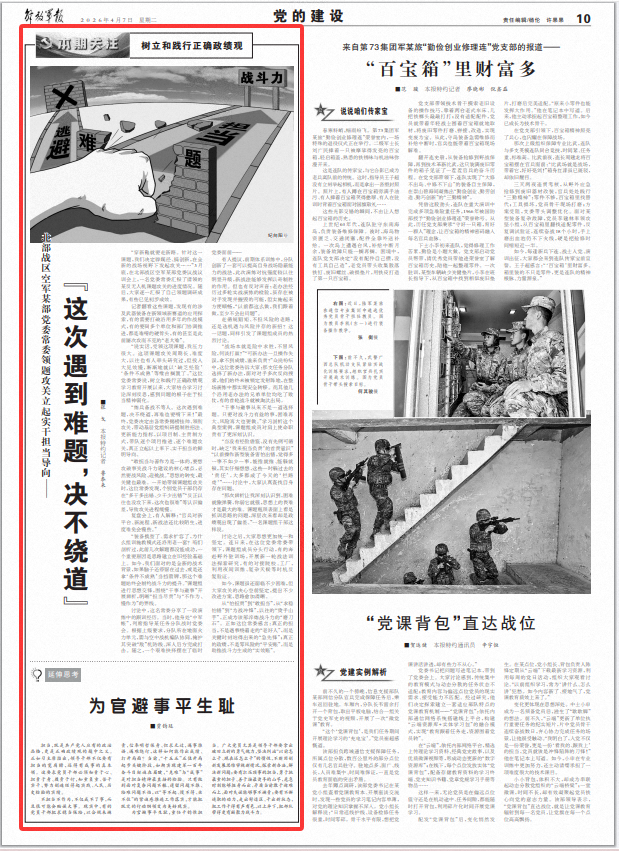 “裝備換型了、需求擴(kuò)容了,為什么組訓(xùn)施教模式還沿用老一套?咱們剖析過,此前幾次解題都沒能成功,一個重要原因是思路建立在舊經(jīng)驗基礎(chǔ)上。如今,我們面對的是全新的戰(zhàn)術(shù)背景,如果腦子還停留在過去,或是還拿‘條件不成熟’當(dāng)擋箭牌,那這個難題始終會制約戰(zhàn)斗力的提升?!闭n題組進(jìn)行思想交鋒,圍繞“干事與避事”開展辨析,明晰“擔(dān)當(dāng)盡責(zé)”與“不作為、慢作為”的界線。