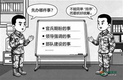 “‘官兵期盼的事’本身也是‘領(lǐng)導(dǎo)關(guān)注的事’,為什么要分高低先后?”該部一名黨委領(lǐng)導(dǎo)的話,讓一些機(jī)關(guān)黨員干部紅臉出汗,低下了頭。
