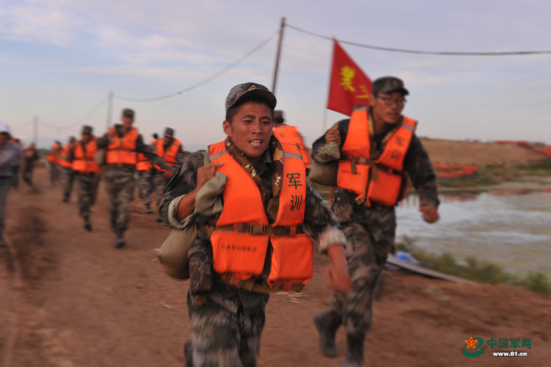 2013年8月,楊德龍沖鋒在抗洪大堤上。
