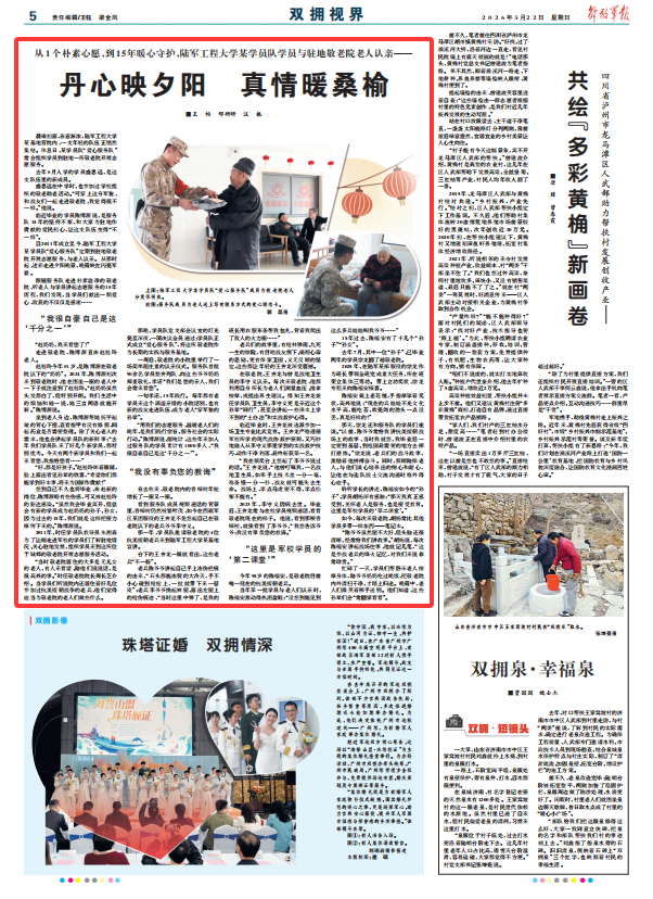 自2011年成立至今,陸軍工程大學某學員隊“愛心服務隊”定期到駐地敬老院開展志愿服務,與老人認親。從那時起,迷彩走進夕陽晚景,晚霞映紅閃亮軍徽。