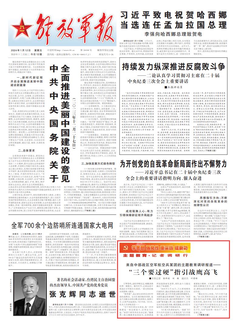 來源:中國軍網(wǎng)-解放軍報 責任編輯:郭妍菲 發(fā)布:2024-01-12 06:16:38
