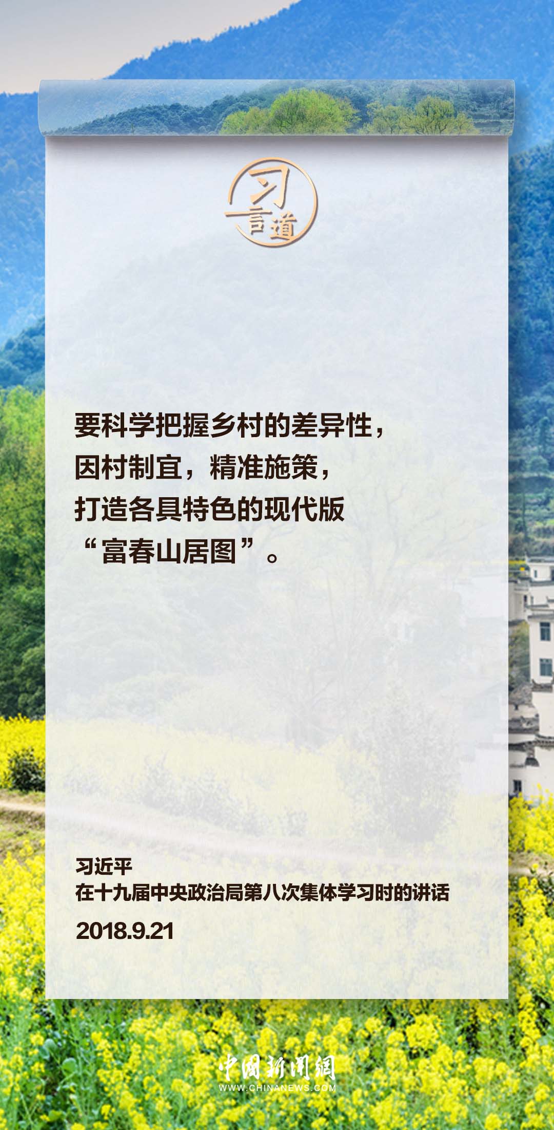 中國要美,農(nóng)村必須美。黨的十八大以來,習(xí)近平總書記高度重視美麗鄉(xiāng)村建設(shè),作出系列重要部署,強(qiáng)調(diào)科學(xué)把握鄉(xiāng)村的差異性,因村制宜,精準(zhǔn)施策,打造各具特色的現(xiàn)代版“富春山居圖”。