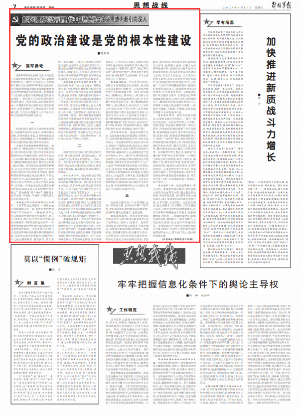黨的政治建設(shè)是一個永恒課題,也是一項(xiàng)系統(tǒng)工程,必須常抓不懈、嚴(yán)抓不松,更好推動軍隊(duì)黨的建設(shè)高質(zhì)量發(fā)展,引領(lǐng)部隊(duì)建設(shè)全面進(jìn)步、全面過硬。