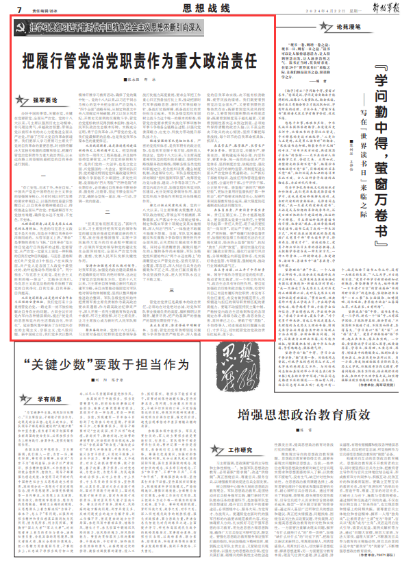 在立身為旗、以上率下中盡好責(zé)任。領(lǐng)導(dǎo)干部作為管黨治黨的組織者、推動者和實(shí)踐者,對一個單位作風(fēng)風(fēng)氣、政治生態(tài)具有導(dǎo)向性作用。要自覺加強(qiáng)政治歷練和政治能力訓(xùn)練,經(jīng)常叩問自己有沒有履好崗位職責(zé)、有沒有不負(fù)信任重托、有沒有做到模范帶頭,持續(xù)鍛造與擔(dān)任的領(lǐng)導(dǎo)職責(zé)相匹配的素質(zhì)能力。要毫不動搖堅持民主集中制,嚴(yán)格按黨內(nèi)政治生活準(zhǔn)則和黨的各項(xiàng)規(guī)定辦事,常修為政之德、常思貪欲之害、常懷律己之心。要敢于唱“黑臉”、不怕得罪人,對違規(guī)違紀(jì)問題露頭就打、寸步不讓,切實(shí)把管黨治黨政治責(zé)任扛起來、落下去。