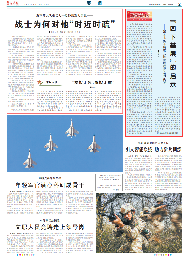 堅(jiān)持基層至上、士兵第一。“四下基層”堅(jiān)持人民至上、為民造福,要求各級(jí)領(lǐng)導(dǎo)干部把人民放在心中最高位置,把為民造福作為最大政績(jī);堅(jiān)持重心下移、著力一線,推動(dòng)力量下沉,提升基層治理效能。“無(wú)論形勢(shì)如何變化,依靠基層、建強(qiáng)基層這一條永遠(yuǎn)不能丟。”我軍在基層建設(shè)中應(yīng)充分尊重官兵主體地位和首創(chuàng)精神,帶著對(duì)官兵的深厚感情做工作,著力增強(qiáng)基層內(nèi)生動(dòng)力和工作主動(dòng)性。
