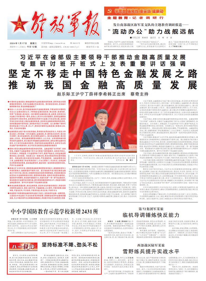 前不久,習(xí)主席在上??疾鞎r強(qiáng)調(diào),第二批主題教育臨近收官,要堅持標(biāo)準(zhǔn)不降、勁頭不松,把主題教育同各方面工作結(jié)合起來,做到兩手抓、兩不誤、兩促進(jìn)。軍隊高質(zhì)量推進(jìn)第二批主題教育,要認(rèn)真貫徹落實習(xí)主席重要講話精神,鞏固拓展主題教育成果,在銳意擔(dān)當(dāng)作為中交出合格答卷。