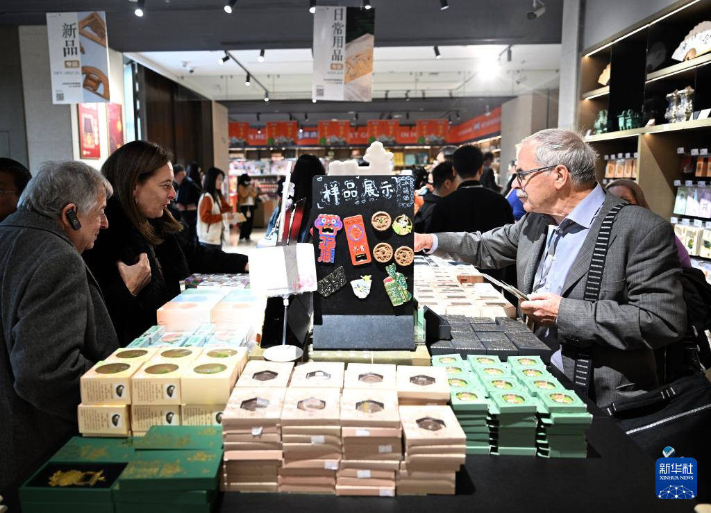 11月4日,外賓在河南博物院選購文創(chuàng)產(chǎn)品。新華社記者 李嘉南 攝