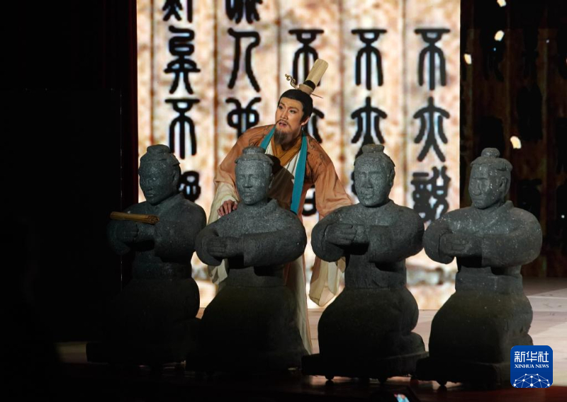 11月6日,演職人員在表演民族舞劇《孔子》片段。新華社記者 張晨霖 攝