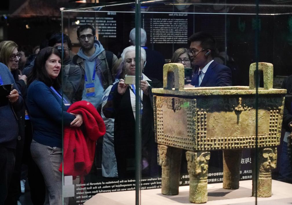 11月6日,中外嘉賓來到中國考古博物館參觀“考古與中華文明溯源展”。該展是本屆世界古典學(xué)大會(huì)推出的配套活動(dòng)之一。新華社記者 張晨霖 攝