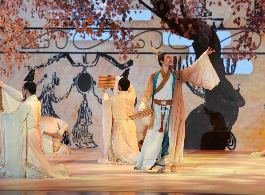 11月6日,演職人員在表演民族舞劇《孔子》片段。新華社記者 張晨霖 攝