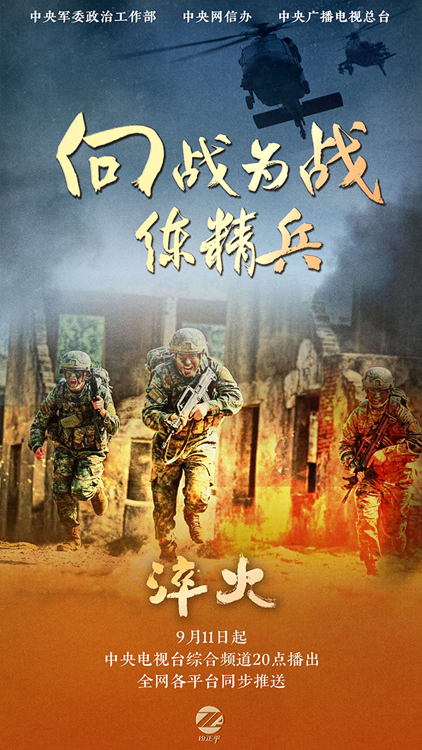 經(jīng)中央軍委批準(zhǔn),中央軍委政治工作部聯(lián)合中央網(wǎng)信辦、中央廣播電視總臺(tái),攝制思想解讀類融媒體片《淬火》。該片從9月11日起在中央廣播電視總臺(tái)央視綜合頻道播出?!洞慊稹饭?集,分別為《軍旗下的誓言》、《向戰(zhàn)為戰(zhàn)練精兵》、《榮光照耀新征程》、《步調(diào)一致向前進(jìn)》、《中流擊水勇?lián)?dāng)》、《同心奮進(jìn)創(chuàng)一流》。